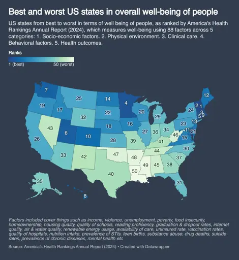 arrow-up134arrow-down1imageBest and worst US states in well-being of people. Ranking is based on homicide rate, suicide rate, poverty rate, education quality, and life expectancy.lemmy.worldsixeyo@lemmy.worldEnglish · edit-227 days agomessage-square11linkfedilink