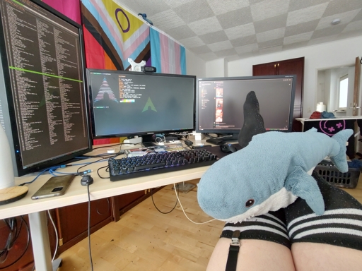 I have every application fixed to a specific workspace, which are fixed to specific screens. Here I have spotify_player, KeePassXC and pavucontrol fixed to the rotated screen, because all of those applications have long lists of items, so it’s better to have more vertical and less horizontal space. And if I need terminals on that screen, I just put them stacked on top of instead of next to each other.