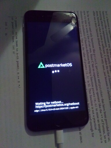 Apple iPhone 6 running Linux 6.13 and postmarketOS.