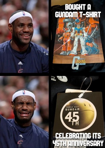 Bought this tee last night because I loved Gundam as a kid. Then I read the tag and realized it is celebrating Gundam’s 45th anniversary and I feel assaulted.