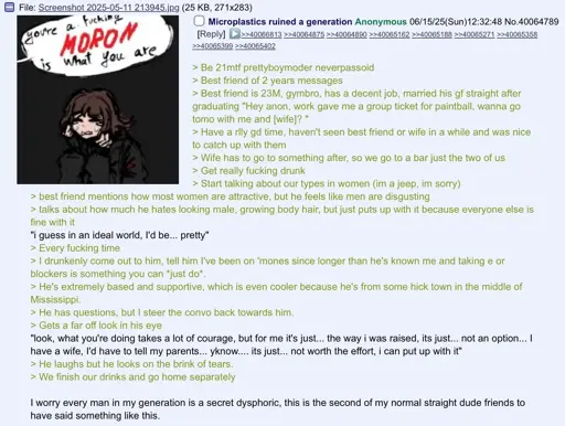 “hates looking male” part I take as extrapolation of not liking archetypical male presentation trends (body hair, short haircuts, moustaches) which I can relate to since I too wish I was smooth