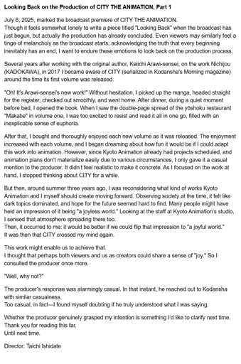 src: https://x.com/CITY_En_info/status/1944057345811919059 in japanese: https://city-the-animation.com/special/production-note/01/