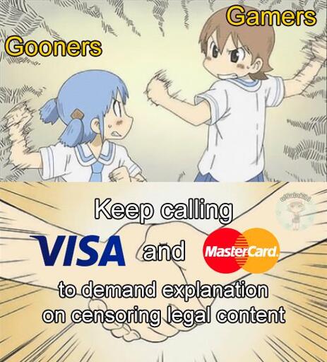 Why? My research upon the Manga Library Z issue says that when Visa/Mastercard cut off Manga Library Z last year, both Discover and AmEx continues to support that controversial store. So that sets Visa/Mastercard as the troublesome ones, while Discover/AmEx might not have the strength to be troublesome yet.