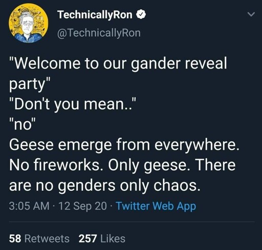 compostgoblin@piefed.blahaj.zone to 196@lemmy.blahaj.zoneEnglish · 8 months agoGander rulepiefed.cdn.blahaj.zoneimagemessage-square9linkfedilinkarrow-up1370arrow-down13