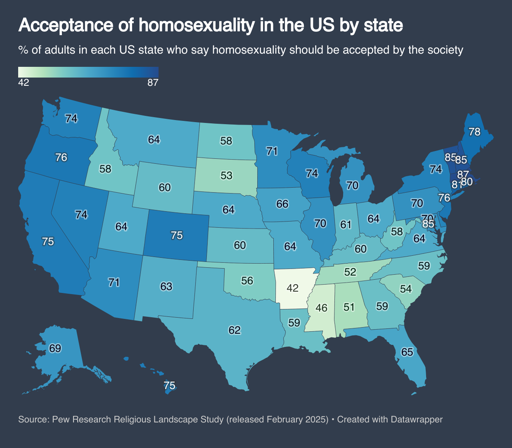 arrow-up141arrow-down1imageAcceptance of homosexuality in the US by statelemmy.worldcm0002@piefed.world to Data is Beautiful@lemmy.worldEnglish · 6 months agomessage-square4linkfedilink
