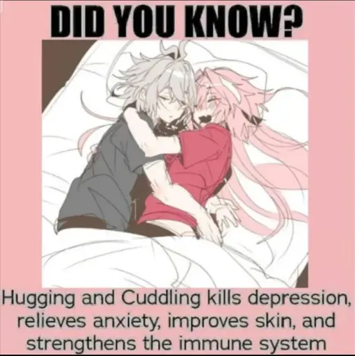minus-squareHasturInYellow@lemmy.worldlinkfedilinkEnglisharrow-up10·4 months agoMan I wish this were true. Love cuddling, but damn. Depression got hands.
