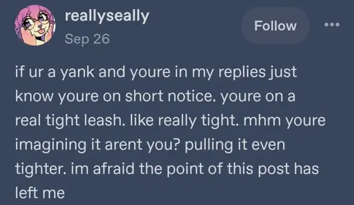 soo— whats a yank?.,., also ummm…,… yesyes im imagening it - but in a comfy way!!! not a weird way,…