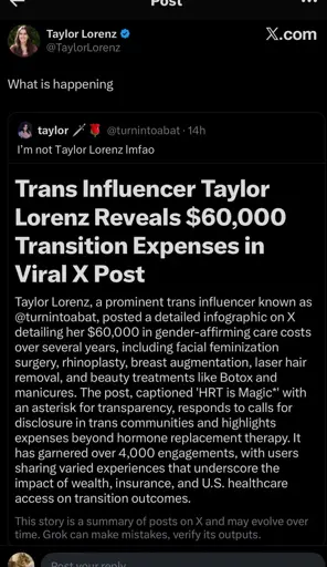 turnintoabat posted information on her transition. Journalist thinks because her name is taylor it must be taylor lorenz. Taylor Lorenz finally gets looped in and is so confused.