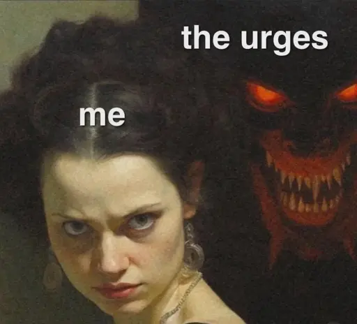 The devil sure doesn’t fit the painting style or time when people painted like that historically. I wonder if the woman is from some 19 century painting, it looks soo good.