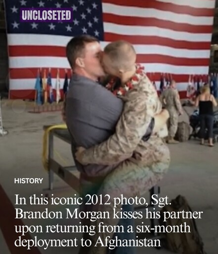 The best part about this to me, who served with the Marines, is that the whole lot of 'em are so gay adjacent that Sgt. Morgan could very plausibly be straight and that other guy is just one of his Marine buddies who wasn’t on the deployment with him and the photographer just made an assumption.