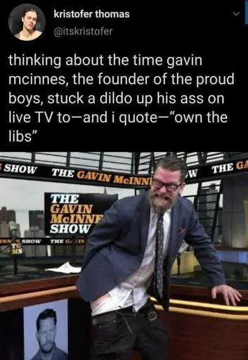 Can’t be homophobic with a dildo up your ass? And he gets the same feeling from it as from owning the libs.