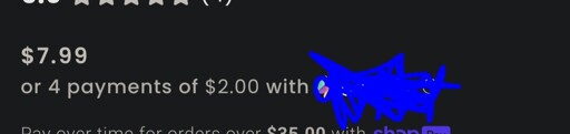 Image is an ad to pay off a $7.99 item in 4 payments of $2.00.