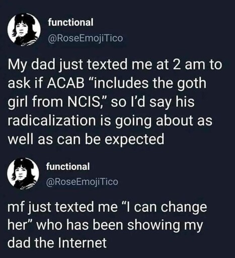 i love brooklyn 99, and this is still true. i have another comment in this thread giving a deeper breakdown. the nypd partnered with b99 for a reason. i think at the end of the day the two messages that go out with b99, the creators and the equipment owners, the creators’ messaging surrounding racial equity, found family, and queer acceptance comes across stronger than the equipment owner’s messaging that not all cops are bastards. but you still have to engage with that the nypd cooperated on that show for a reason, and it’s worth talking to less critical viewers about that no, sophia is not a monster, you fucking dipshits. what she says about defense attorneys is outright true, and the prevailing online opinion that she’s a terrible person is not shared across the spectrum (this is literally an opinion i’ve only ever encountered with one real life person and with redditors at large)
