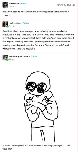 idk why that’s so interesting to me, ig I never considered that different drugs are attempts to solve a problem instead of just the solution