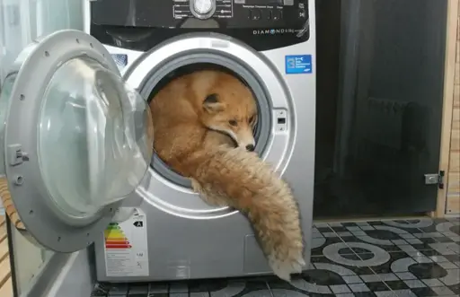 I think it’s a pun on the fact that the fox has been consumed by a machine.