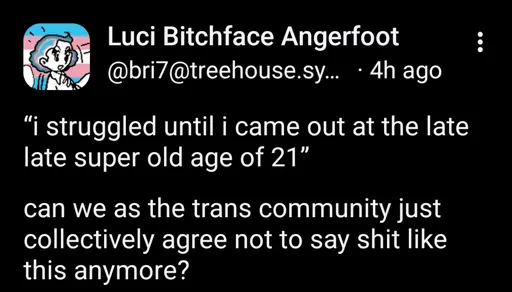 That along with “I’m 19. Is it too late for hrt? Will I ever pass?”