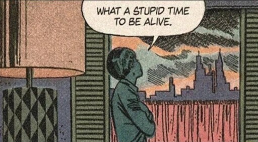 Born in the wrong genre. We could have been colonizing space. Instead, old men are fighting over old arguments and ideals that should have been long dead.