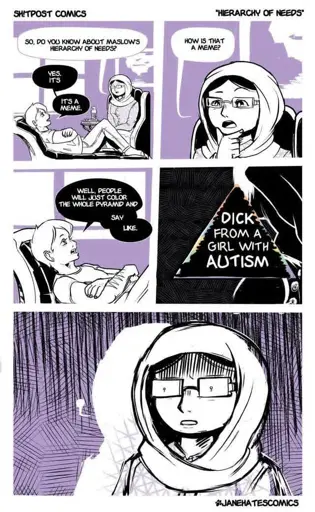 (panel 4) A colored-in pyramid captioned “dick from a girl with autism”
