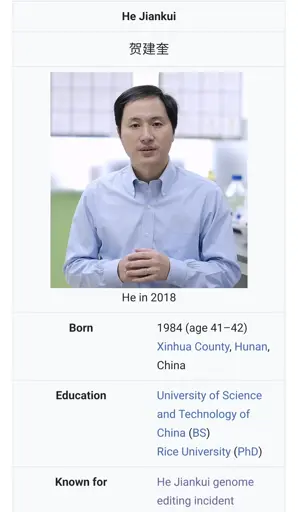 arrow-up177arrow-down1imageHe Jiankui genome editing rulecidentlemmy.blahaj.zonefroufox@lemmy.blahaj.zone to 196@lemmy.blahaj.zoneEnglish · 2 months agomessage-square12linkfedilink