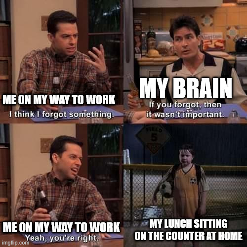 EDIT: My day just got better, the boss asked me if I wanted a short day before I could ask him. Looks like no vending machine sandwiches of questionable age for me today.