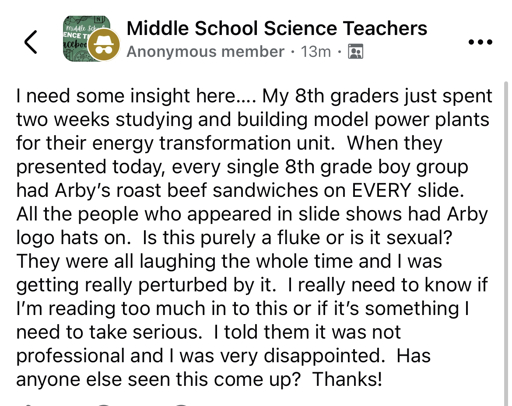 Are we more concerned with why the teacher finds Arby’s sexual?