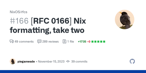 2·1 year agoOh, I know; I have commit access to Nixpkgs ;)